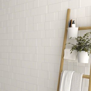 Os azulejos Pincio, de 10x20cm, são um patchwork de relevos e texturas, vendidos em peças individuais e aleatórias, e podem ser paginados entre si ou com os azulejos Corso.