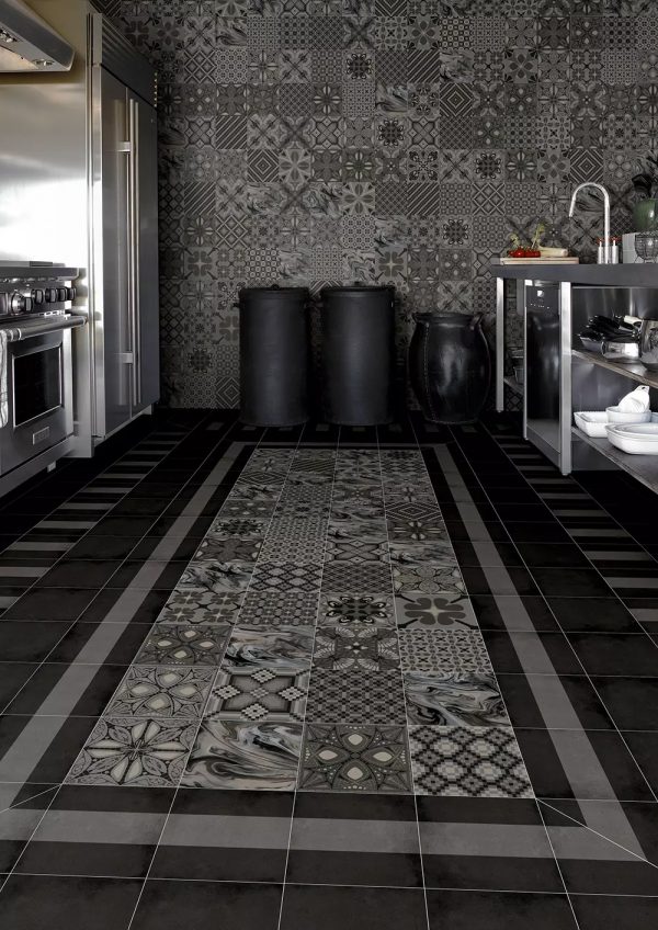 Indicado para revestimentos de piso e parede, Tassel Grafito permite diversas paginações, sendo um ladrilho versátil tanto para ambientes contemporâneos quanto para aqueles com ar mais retrô.