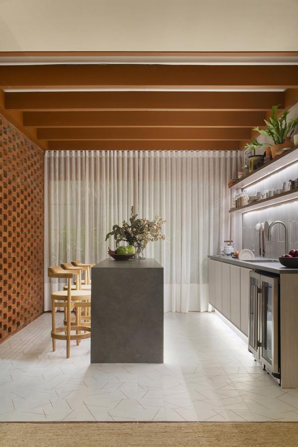 E foi pensando nisso que o SP Estúdio desenhou o ladrilho Ninho, produzido pela Colormix, para seu ambiente na CASACOR 2020. O Ninho, ícone que também está presente na logomarca do SP Estúdio, foi reimaginado em 3 peças distintas e complementares, que propõe uma metáfora para a vida, às vezes se encontrando, às vezes se perdendo.