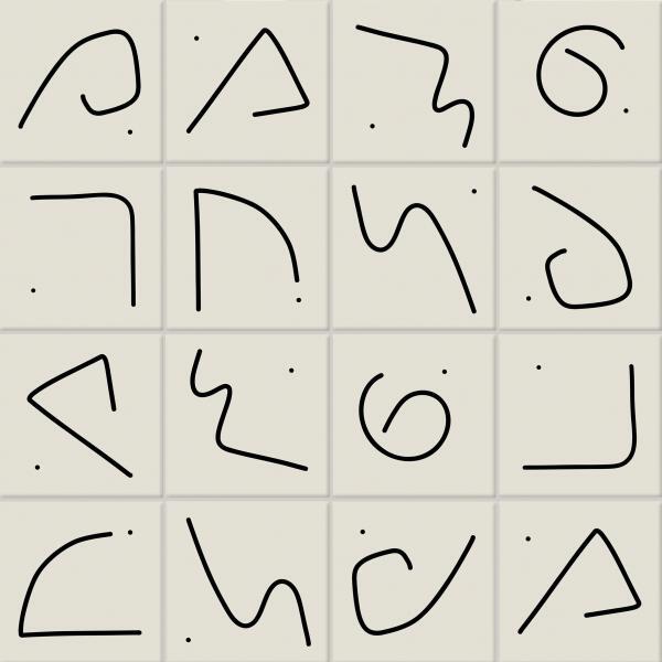 A partir dos traços puros e orgânicos, Rubrica representa uma síntese, uma forma essencial que comunica e designa uma marca pessoal. Rubricas em preto e vermelho formam as 7 peças que combinadas entre si, criam múltiplas composições. As peças são vendidas individualmente, de acordo com a paginação específica do projeto.